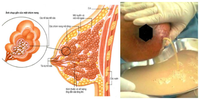 Áp xe vú do cho con bú: Do tắc tia sữa, sữa ứ đọng kết hợp vi khuẩn.