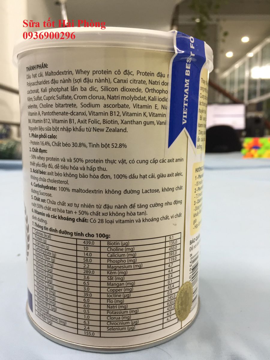 Dầu hạt cải, Maltodextrin, whey protein cô đặc, protein đậu nành, polysaccharides đậu nành (sợi đậu nành), canxi citrate, cacbonat, kali photphat lần ba dic, silicon dioxede, orthopho, kẽm, Sulfat, cupric Sulfate, Crom clorua, Natri molybdat, kali iodia, selenite, choline bitartrete, sodium ascorbate, vitamin E, vitamin A, pantothenate-dcanxi, vitamin B12, vitamin K, vitamin B1....Nguyên liệu sữa bột nhập khẩu từ New Zealand.